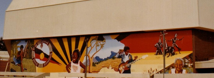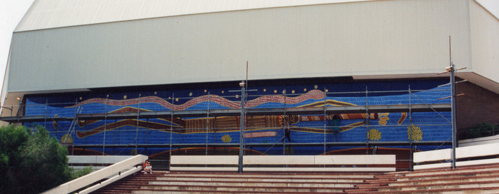 Adelaide festival centre mural 1982, with Carol Ruff, Ronnie Ansell, Eve Glenn & Colin Brown.