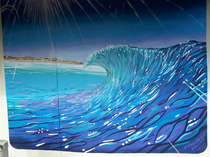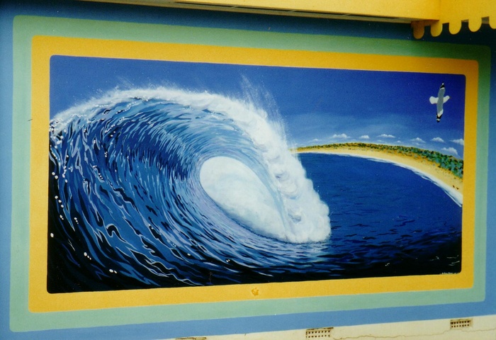 Wave mural on the old Middleton general store, 1995. The store was rebuilt some years ago, so this mural was lost. I have since replaced it with this one.