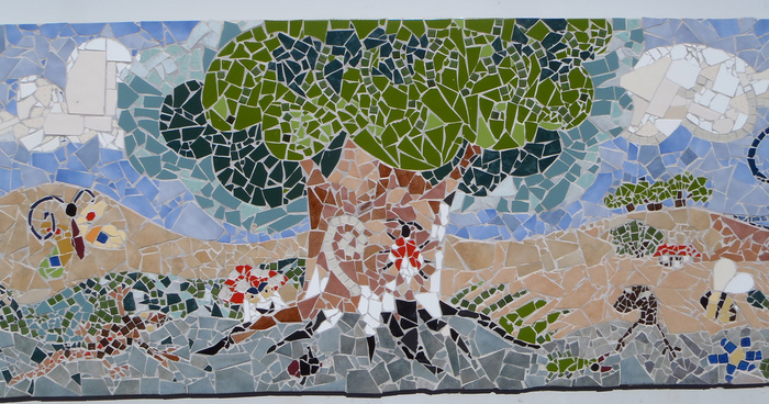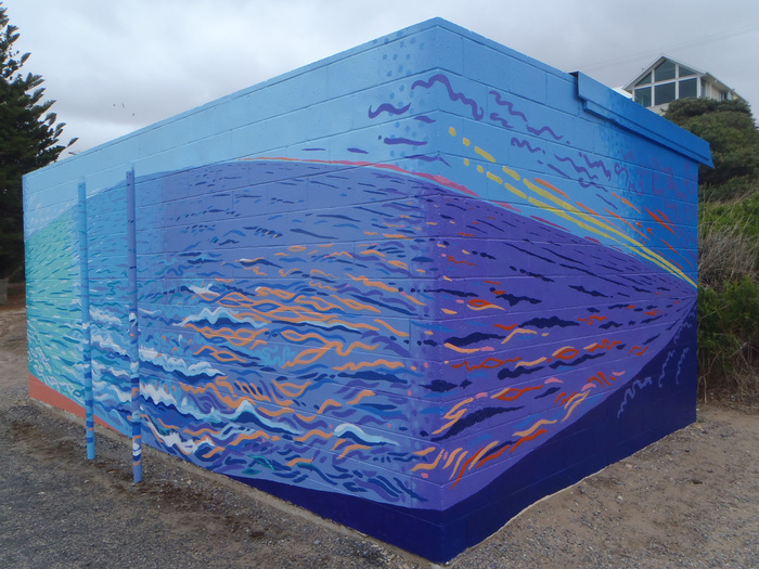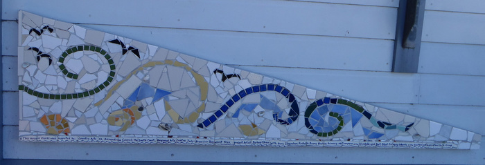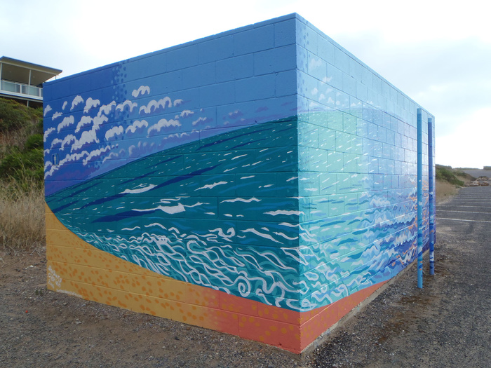 The following two images are of a mural on the refurbished toilet block on the seafront at Middleton South Australia.