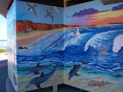 Nowadays my focus is more on the environment. I live out in the country, on the coast, and much of my mural art is about the ocean, the coastal environment, and surfing. Many of these murals have now gone, so it is with pleasure that I archive them here. Murals are an ephemeral artform after all!