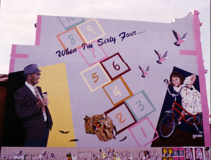 'When I'm 64' Mural on Frome Rd Adelaide for the Come Out youth arts festival 1984. This mural has since been altered, with my partial permission and involvement.