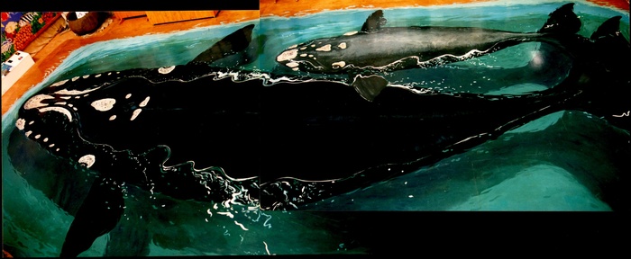 Floor mural of Southern Right whale & calf. Victor Harbor Whale museum & education centre 1995. I repainted it in 2022.